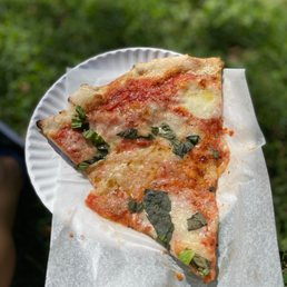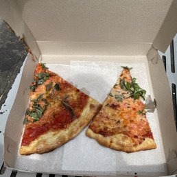 All the hype drove up my expectations. Ordered in advance thinking there would be a massive line especially during Father's Day. Ordered 2 slices (cheese and square). 50 min wait. Arrived with no line but the slices were piping hot. Cheese slice had good flavor and bite. $6 is a bit steep for a plain cheese slice though. Square slice was mid for $8. Tomato sauce was good. The dough was a tad thicker and soggy.